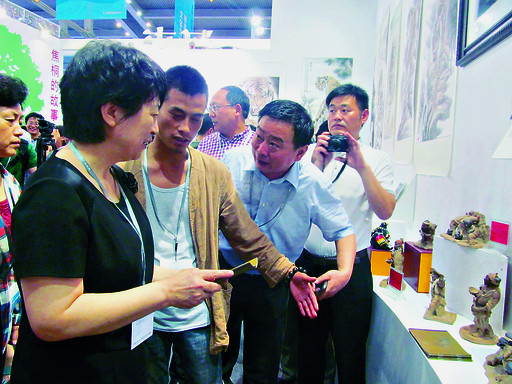 趙素萍對我市展出的泥塑、泥咕咕、裸眼3D產(chǎn)品、動漫短片等表現(xiàn)出濃厚的興趣,希望參展企業(yè)在宣傳推介文化產(chǎn)品的同時,積極學(xué)習(xí)外地在文化產(chǎn)業(yè)發(fā)展方面的經(jīng)驗和做法,不斷完善提升,為我市乃至全省文化產(chǎn)業(yè)的大發(fā)展大繁榮提供強有力的支持。在河南三陽光電有限公司展臺處,趙素萍觀看了裸眼3D產(chǎn)品展示,認(rèn)為該項目科技含量高、市場潛力大,鼓勵企業(yè)加快開發(fā)更舒適、更逼真的產(chǎn)品,早日實現(xiàn)產(chǎn)品進(jìn)入家庭的目標(biāo)。在魂子泥塑藝術(shù)有限公司展臺處,趙素萍認(rèn)真察看該公司的展品,并與公司負(fù)責(zé)人、河南民間工藝美術(shù)大師宋慶春親切交談,鼓勵他進(jìn)一步將傳統(tǒng)文化與現(xiàn)代創(chuàng)意相融合,做出更多更好的工藝品。趙素萍還觀看了市華寶動漫有限公司出品的動漫短片《小鶴仙與大水怪》,對該公司的創(chuàng)意及制作水平給予充分肯定。