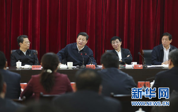 3月17日至18日,中共中央總書記、國家主席、中央軍委主席習(xí)近平在河南省蘭考縣調(diào)研指導(dǎo)黨的群眾路線教育實(shí)踐活動。這是3月18日,習(xí)近平聽取蘭考縣教育實(shí)踐活動情況匯報(bào),并發(fā)表重要講話。(新華社記者 丁林 攝)