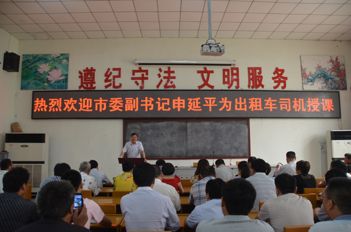 6月10日,濮陽市委副書記申延平到濮陽市出租車司機文明學(xué)校為200名出租車司機志愿者上課培訓(xùn)
