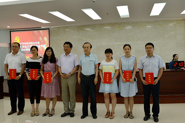 通過(guò)舉辦黨的理論知識(shí)競(jìng)賽,達(dá)到了以賽帶學(xué)、以學(xué)促用的目的,充分調(diào)動(dòng)了部機(jī)關(guān)黨員干部學(xué)習(xí)的自覺性和積極性,把枯燥的理論知識(shí)和活潑的比賽形式結(jié)合起來(lái),使大家在積極參與的過(guò)程中不斷鞏固學(xué)習(xí)成果。根據(jù)今天競(jìng)賽情況,將組建省委宣傳部代表隊(duì),參加省直機(jī)關(guān)“喜迎十九大 機(jī)關(guān)做表率”黨的理論知識(shí)競(jìng)賽。
